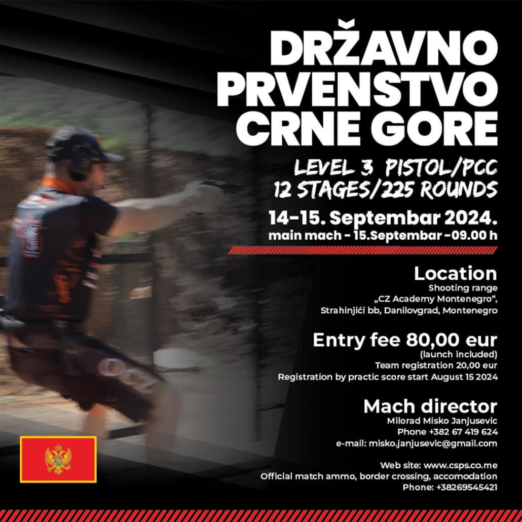 Drzavno prvenstvo Crne GoreNedelja, 15.09.2024 Prijava Practi Score https://practiscore.com/drzavno-prvenstvo-cg-csps-2024/register